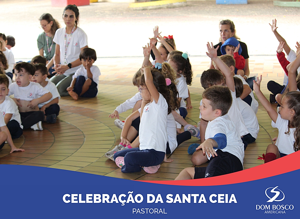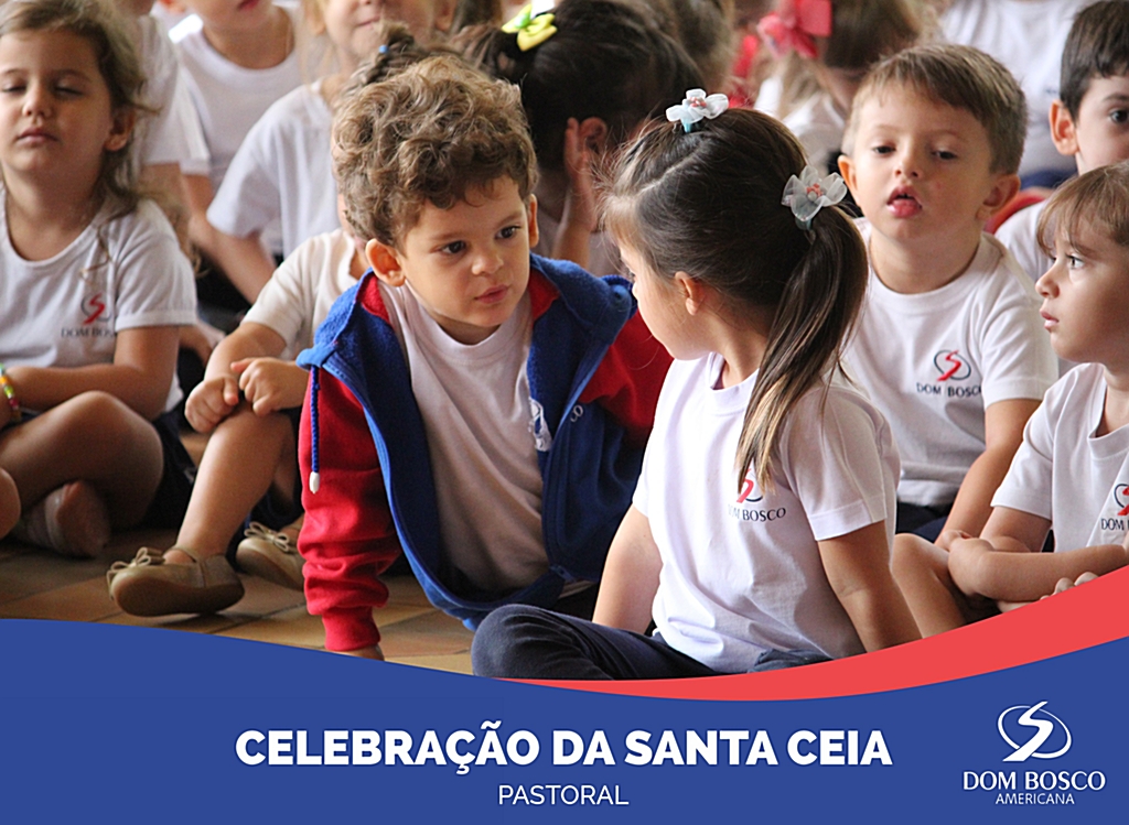 Durante a Semana Santa as crianças da Educação Infantil vivenciaram a celebração da Santa Ceia realizada pela Equipe de Pastoral em preparação a festa da Páscoa. Os alunos ouviram o Evangelho contado pelo Pe. Márcio e, posteriormente, partilharam o pão e o suco de uva com os amiguinhos da turma.