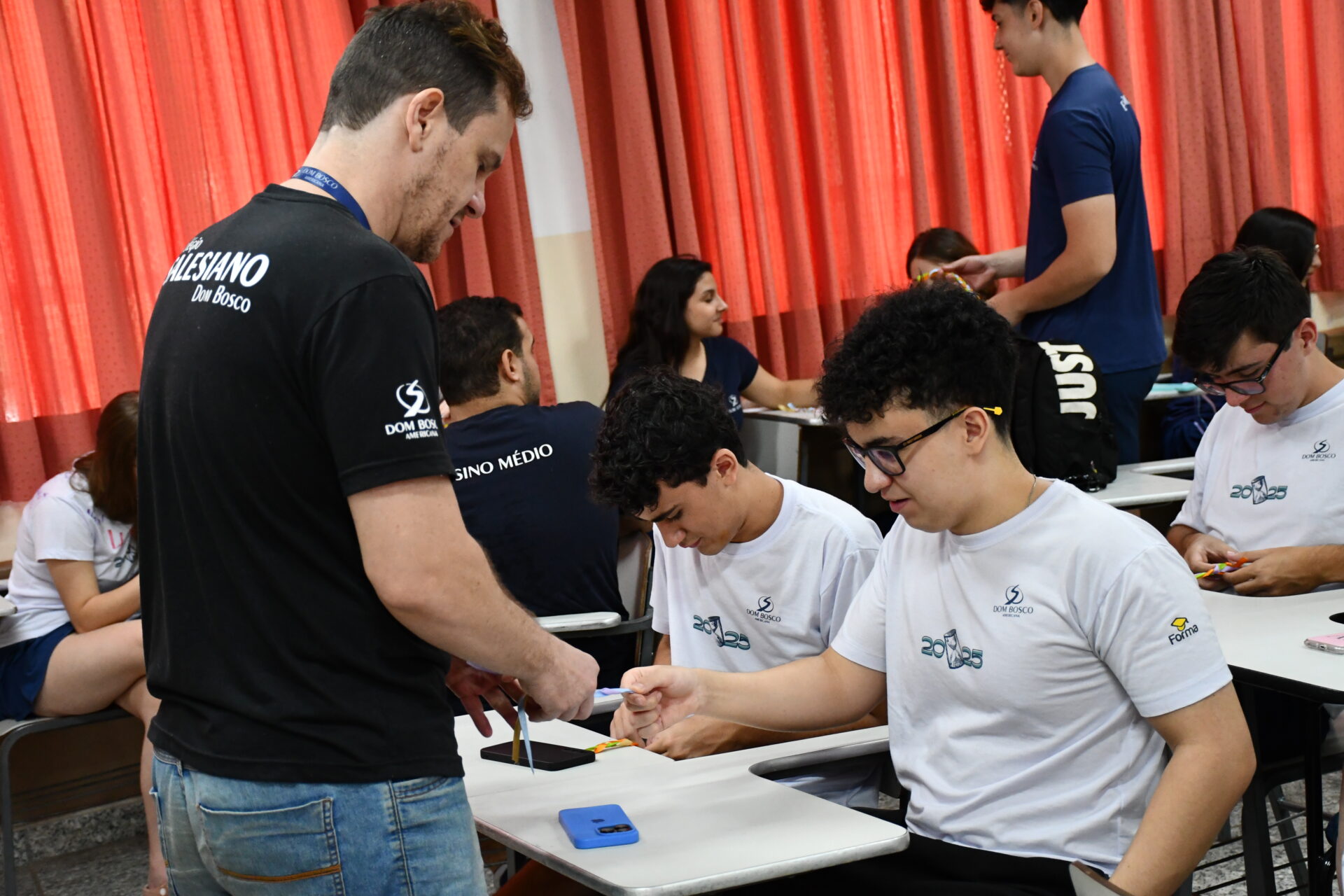 Com caminhada afetiva pelos espaços do colégio, mensagens carinhos de educadores que passaram pela trajetória escolar e as tradicionais cartinhas de suas famílias. E, como gesto simbólico e cheio de afeto, as próprias famílias vieram buscá-los pela última vez e encerramos com uma deliciosa confraternização preparada com carinho pelas mães da comissão de formatura.