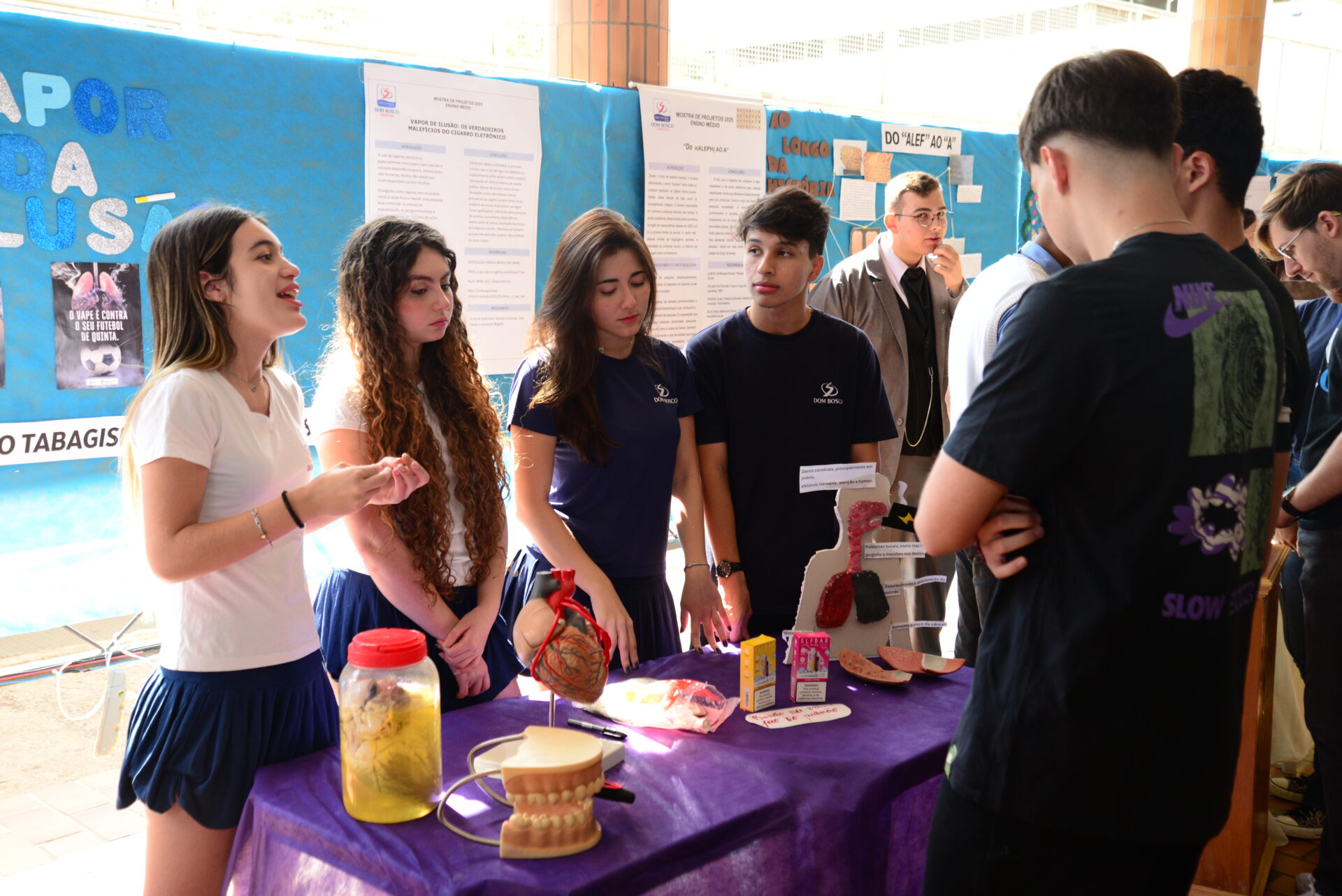 Já nossos estudantes do ensino fundamental anos finais e ensino médio brilharam como verdadeiros protagonistas, apresentando projetos que refletem não apenas o conhecimento construído ao longo do ano, mas também o compromisso com temas relevantes para a sociedade.